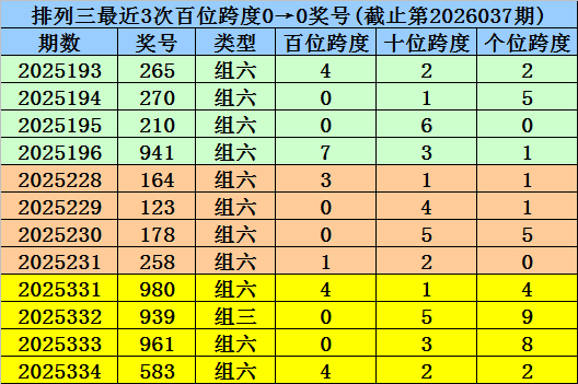第2025331-第2025333期奖号:980、939、961,其下期奖号为:583,首位号码跨度为4;